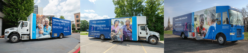 This is why we offer multiple mobile mammography buses that are staffed by the same highly skilled and caring health professionals who work in our hospitals. Our fleet of Mobile Mammography units provide the latest in 3D mammography, along with traditional 2D mammography, at a location that’s convenient for you. The mobile mammography buses travel to Henry Ford sites that do not have breast screening technology, community events, churches and businesses. Our mobile mammography vans are designed for women’s comfort and privacy with attractive waiting rooms, changing rooms and exam rooms.