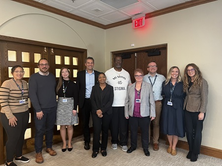 The 2024 Collaborative-wide Meeting was held on Friday, Oct. 11 from 9 a.m. to 1 p.m. at St. John’s Resort in Plymouth, Mich. PO leadership met and exchanged ideas with like-minded practitioners, enjoyed a delicious lunch, and picked up MI Mind handouts, branded items, and patient materials translated into multiple languages. The keynote speaker was Kevin Fischer, executive director of NAMI Michigan, past president and executive director of CIT International, and the CEO of EverybodyVsStigma.com. He shared his lived experience with stigma reduction, community outreach and suicide prevention.