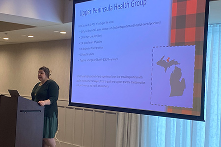 Rachel Riley, Clinical Coordinator, Physicians Group Incentive Program, BCBSM, and the MI Mind PO Representative for Upper Peninsula Health Group, addressed behavioral health access across the Upper Peninsula.