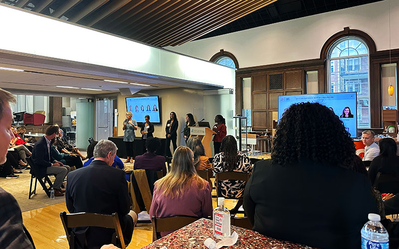 Five multidisciplinary teams engaged in an equity-centered design thinking process to develop actionable prototypes addressing these cancer types. Teams collaborated to identify barriers to care and create solutions aimed at eliminating disparities in cancer outcomes for marginalized communities.