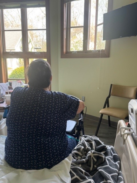Beth’s perspective on life — and death — is both grounded and inspiring. “Living is harder than dying,” she says with a gentle smile. Her room is filled with pieces of her past, including a beloved decorative deer named Bruce, who wears a new outfit each season thanks to her family’s thoughtful touch. Large windows welcome sunlight and wildlife alike — birds at the feeder, groundhogs, and deer — all providing a calming connection to nature. “The sun coming in is so beautiful. It lights up my room. I can sit and watch nature, and it brings me peace.”