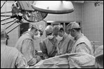 1952: Henry Ford vascular surgeon Dr. D. Emerick Szilagyi performs Michigan's and one of the world's first grafts of an abdominal aortic aneurysm. 1955: The hospital celebrated the opening of a 17-story Clinic Building, which housed 14 specialty outpatient clinics, a 35,000-volume medical library and 20 new operating rooms. The new facility relieved crowding. - Dr. Szilagyi established the first homograft blood vessel bank in the state. Sterilized homografts from human cadavers are used in clinical practice and shared with other institutions. - The initial meeting of what was to become the Six Clinic Conference was held in Detroit in January, and included representatives from Henry Ford Hospital, Ochsner Clinic in New Orleans and the Cleveland Clinic. In March, the group met again in New Orleans, and were joined by representatives from the Mayo Clinic in Rochester, Minnesota, and Lovelace Clinic in Albuquerque, New Mexico. In November a third meeting was held in Cleveland. This one served as the first formal meeting of the group, and included members from the sixth participant, the Lahey Clinic in Boston. For 40 years representatives of the same six institutions met annually, rotating locations among themselves, to compare ideas and activities of their multi-specialty, group practice institutions. 1956: Henry Ford cardiothoracic surgeon Dr. Conrad Lam performs the first successful open heart surgery in Michigan using the heart-lung machine. - Henry Ford’s Dr. James Barron develops the Barron Food Pump, a device used to deliver pureed food through a small nasal gastric tube. 1958: WWJ-TV in Detroit broadcasted a live telecast of a surgical procedure involving the resection of an aorta and its replacement with an artificial Dacron graft. The operation, performed by Drs. D. Emerick Szilagyi and Roger F. Smith in a Henry Ford Hospital operating suite, was described as it proceeded by television newsman James Clark. Commentary was provided by an expert panel including Dr. Henry Bahnson of Johns Hopkins Hospital, Dr. Marion S. Deweese of the University of Michigan and Dr. Eugene Osius of Harper Hospital. The live broadcast, sponsored by the Michigan State Medical Society and the Wayne County Medical Society during the 12th annual Michigan Clinical Institute, was one of the first of its kind in the United States and brought positive acclaim to the hospital and its Department of Surgery. |