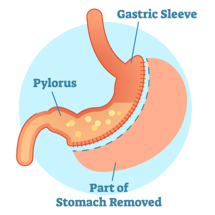 During this procedure, a small stomach pouch or sleeve is created to decrease the amount of food it can hold. This surgery does not involve the small intestine in any way.
