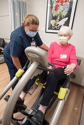 Her recovery was long and complicated, with many twists and turns. Under the direction of her physicians, Lisa Allenspach, M.D. and Lisa Stagner, D.O. — and with support from a team of nurses, physical therapists and rehab specialists — Elizabeth has regained much of her strength, independence and mobility, thanks to many hours of exercise along the way.