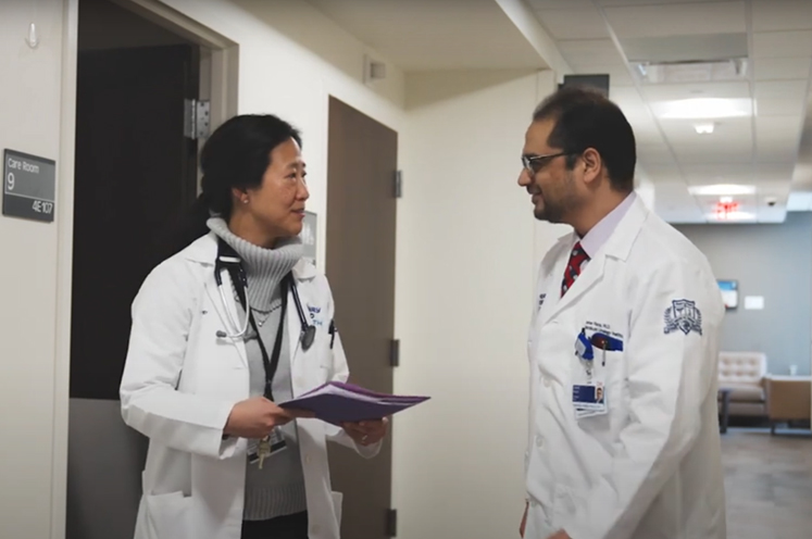 Part of her treatment plan was managed by Clara Hwang, MD, medical oncologist at Henry Ford Health, who specializes in bladder cancer treatment. It included four cycles of chemotherapy, followed by immunotherapy, which Dr. Hwang describes as an important part of the comprehensive treatment plan.