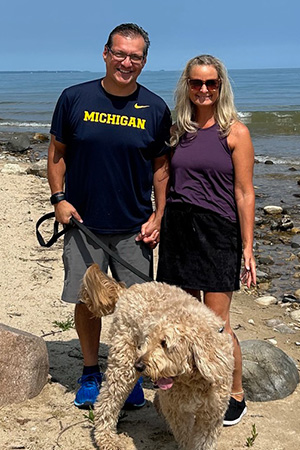 Patrick shares that in 2022, his wife Stacey was diagnosed with breast cancer and was successfully treated at Henry Ford Health. With Stacey’s positive hospital experience and family members who had undergone hip replacement procedures at Henry Ford, he researched and consulted with Trevor Banka, MD, orthopedic surgeon who specializes in total joint replacement.
