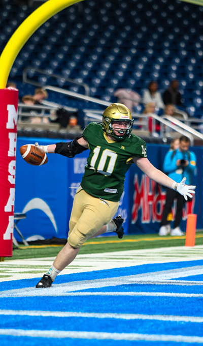 Logan went on to play the rest of the season with a stability brace, helping lead Lumen Christi to their third consecutive Division 6 MHSAA State Championship title. In the final game at Ford Field, Logan capped his high school career with a highlight-reel play, making a great catch and running it in for a touchdown.