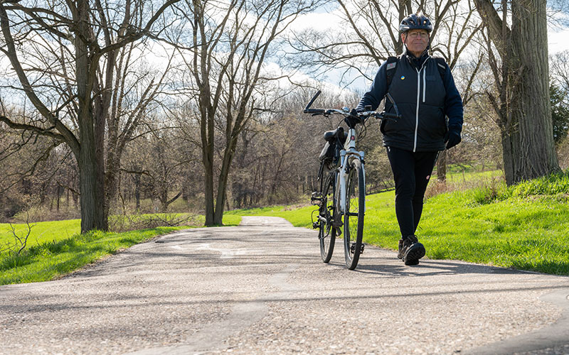 When Don first started biking the eight-mile loop around the lake at Kensington Metro Park, he could only make it 5 miles. That took 90 minutes, including five stops to catch his breath. Now, Don is able to do the entire loop twice in 55 minutes, without stopping.