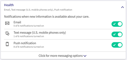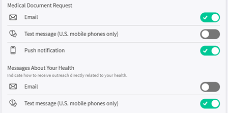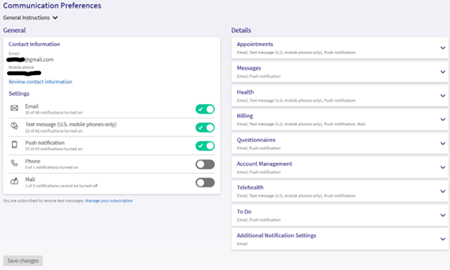 • You can have different communication preferences for different message types, such as appointment notices, billing, health reminders and others.