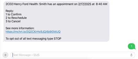 Henry Ford Health recently upgraded our patient text messaging system. This new system will make it easier for you to get text messages about your visits, information related to your MyChart account, prescription reminders, announcements, and more. For your safety, and in accordance with applicable state laws, please do not use text or messaging services while driving.