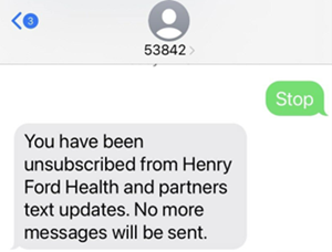 There are now two numbers associated with Henry Ford Health that you may get a text from.
